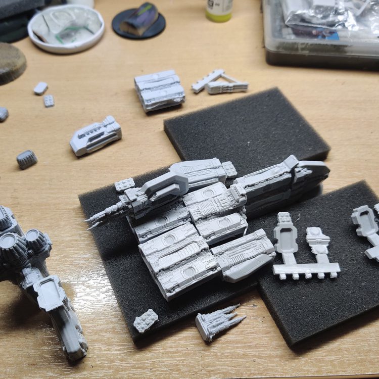 Yeah, it's honestly a spaceship Lego. Each piece is probably an inch big, and then you can add a bunch of them together to make your dreadnought however you want. There's three different sizes of dreadnought you can make from the kit. I'm not doing the maths on how many variations you can because it's basically infinite at this point. There's so many different things you can make and we've been having fun playing with them in the office, like making different builds.