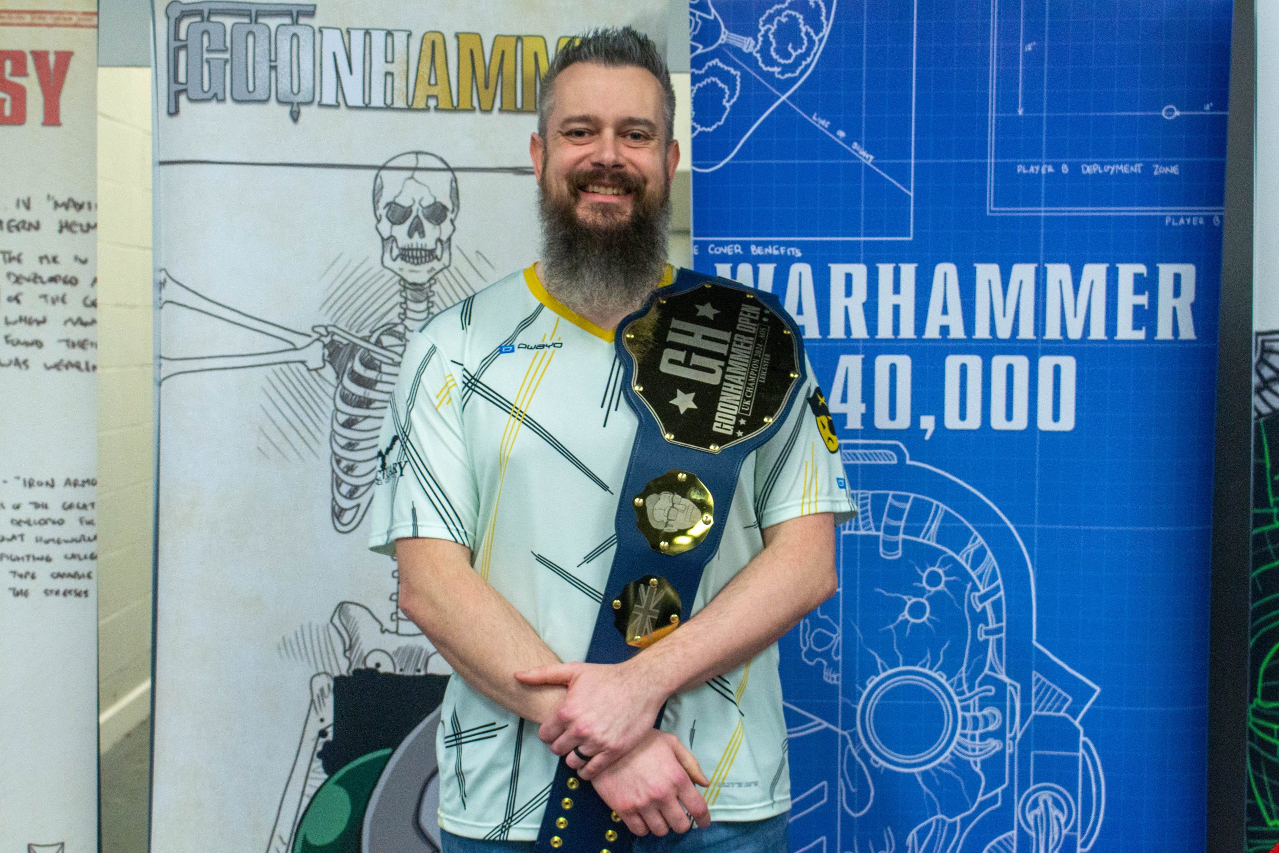 Baz Norman, the first Age of Sigmar UK Goonhammer Championship belt holder at the March 2024 GHO