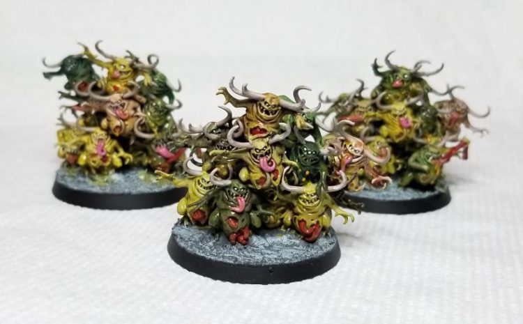 Nurglings are… weird. They are Battleline and Infiltrate, which is nice. They also have a 6” aura of -1 to Hit in melee for enemy units. There is one glaring issue, however: They have 0 Objective Control. This is a crushing blow. You’ll stick take a unit or two if they’re super cheap to disrupt the enemy early, but they’re no longer the early tempo piece they once were.