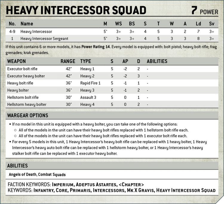 There’s now a girthy 13 Chapter Tactics in the book, incorporating all nine First Founding Chapters, plus the really notable successors who have their own rules: The Crimson Fists, Black Templars, the Flesh Tearers, and the Deathwatch.