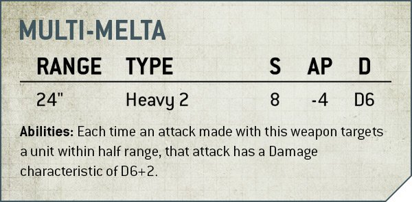 - Tactical Squads obviously get a big change, going up to 2 wounds (and 18pts!). They also pick up the MELTA BOMB keyword, which is cool and gives them a further little bit of utility to separate them from Intercessors