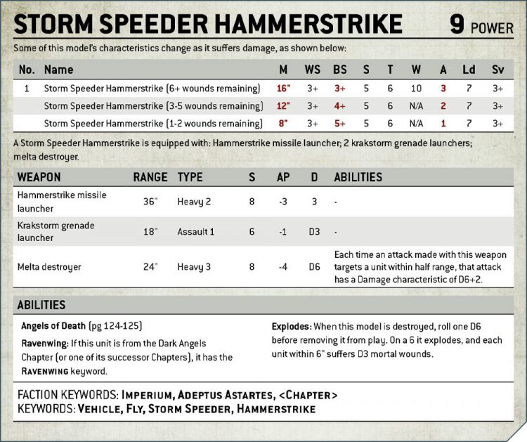 The recent trend for Land Speeder Storms looks likely to wane, as the Scouts inside them are no longer Objective Secured and therefore substantially more vulnerable to being demeched and then flipped off an objective - though gaining Assault Vehicle does now make them great for bursting forwards with the Scouts jumping out to do an action.