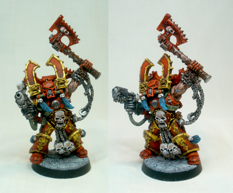 Frenzy rule, except you can still parry when frenzied. Each mark of Chaos has a different cost associated with it, ranging from +10 to +30 points, and only champions could take marks of chaos - regular marines, veterans, terminators, et al were unable to take them. In addition, only Chaos Lords and Sorcerers could have the Mark of Tzeentch, and Chaos lords could have any number of marks, making it common to see Chaos Lords sporting all four benefits (and also rocking into battle as level 4 psykers).