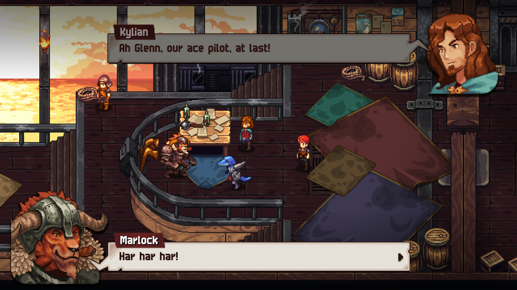 Jonathan Bernhardt: Speaking about the righteousness of a singular obsessive, this game was essentially made by one Matthias Linda -- and he's played every single Square Enix RPG from the NES era through the late Playstation 2 era at the very least. The game opens with a Chrono Trigger homage, then an FF8 homage, then a Xenogears homage, then -- we're not outside of the first prologue, mind you. The boys hit the toys and we snap to a princess and her snarly manservant, and the game just runs out from there. Chained Echoes is a name that actually makes sense once you get 10 hours into its run time but until then you're playing a title that sounds like Kingdom Hearts DLC and, instead of being that, is serving you the best stuff front to finish from every game you played -- here, you are currently 35 years old -- when you were gaining your sealeags with Japanese RPGs. Everything about this title is the way JRPGs should be. The battle schema is tight, with an Overdrive system that forces you to play inside of its parameters, and the advancement systems are pulled from the greatest games in this tradition, from Final Fantasy 12 to Final Fantasy 9 to Chrono Cross to the three titles mentioned before. Especially Xenogears. You know that thing about how you'd pilot your mech in combat in Xenogears? You will be piloting your 'Sky Armor' in combat.