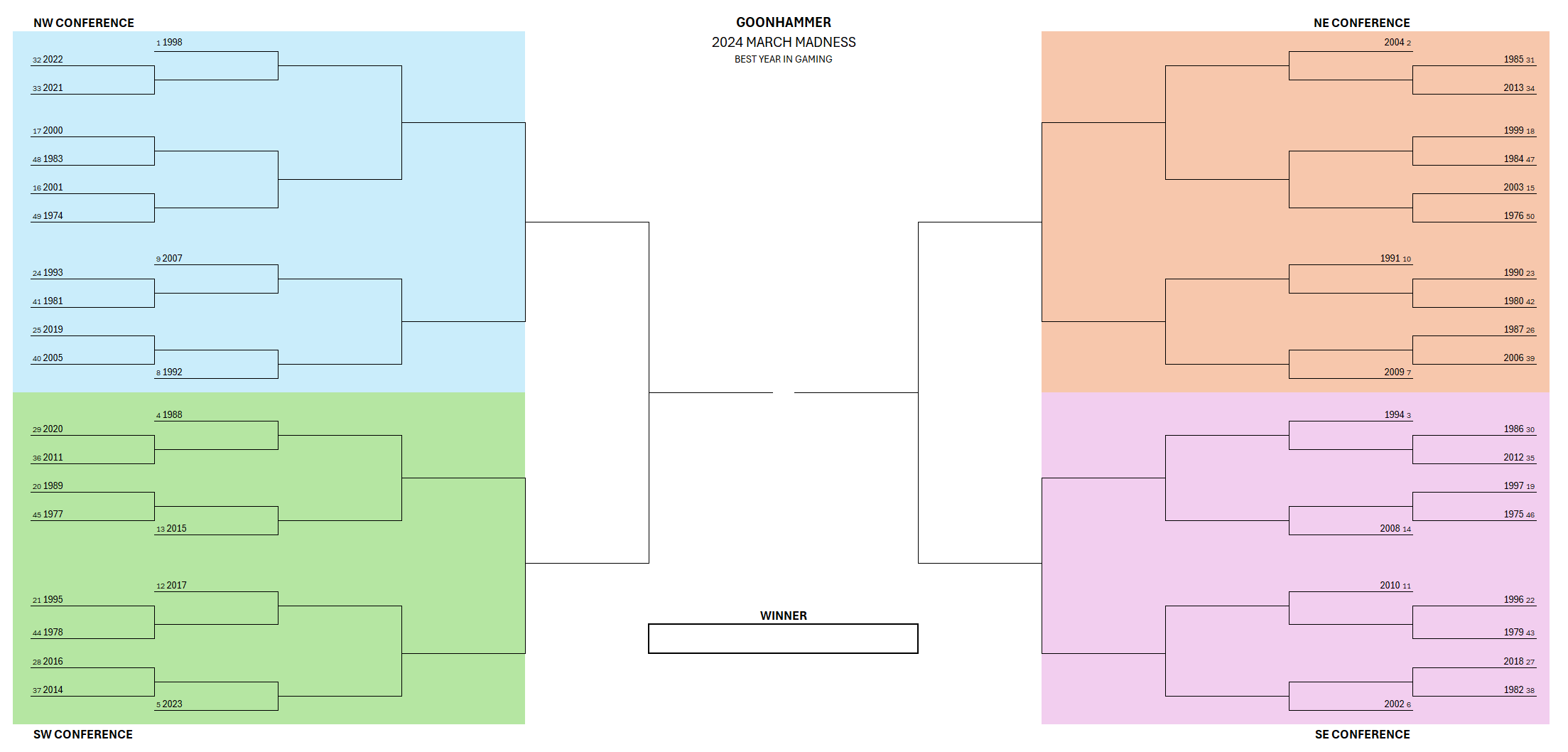 After a stellar 2023 in games we decided to celebrate March Madness 2024 with a tournament to determine the greatest year in gaming history, going back to 1974, the year Dungeons & Dragons was first published. A ton of research went into this project, and we've collected those articles together in one place here.