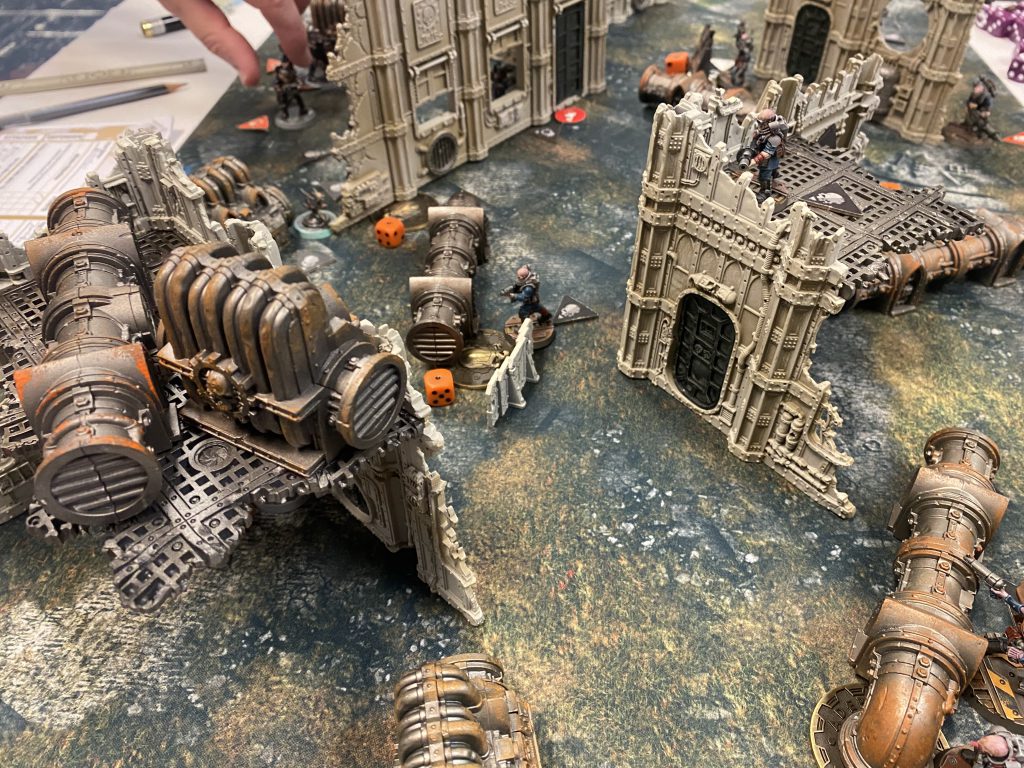 Day 2 saw the first introduction of the Into the Dark missions into a GW sponsored Kill Team Event, and all of us were buzzing for answers to the numerous questions that the ruleset raised for many ploys, Tac Ops, and other interactions. Nick pulled us all in and announced that for the purposes of Tac Ops and Ploys, walls would not interfere with the measuring of distances, but that abilities that allow models to pass through walls, such as my Writhing Ingress Ploy, would not be allowed. This last part was not unexpected, and while it does essentially make one of my ploys useless, I was confident I could make due with what I have.