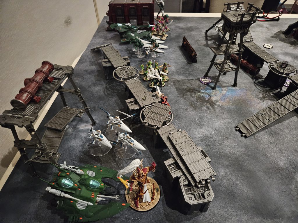 We called the game on 3, with his Avatar and Striking Scorpions as the only units really in the game still. We talked out the final turns of his Dire Avengers getting slowly gunned down, mission accomplished.