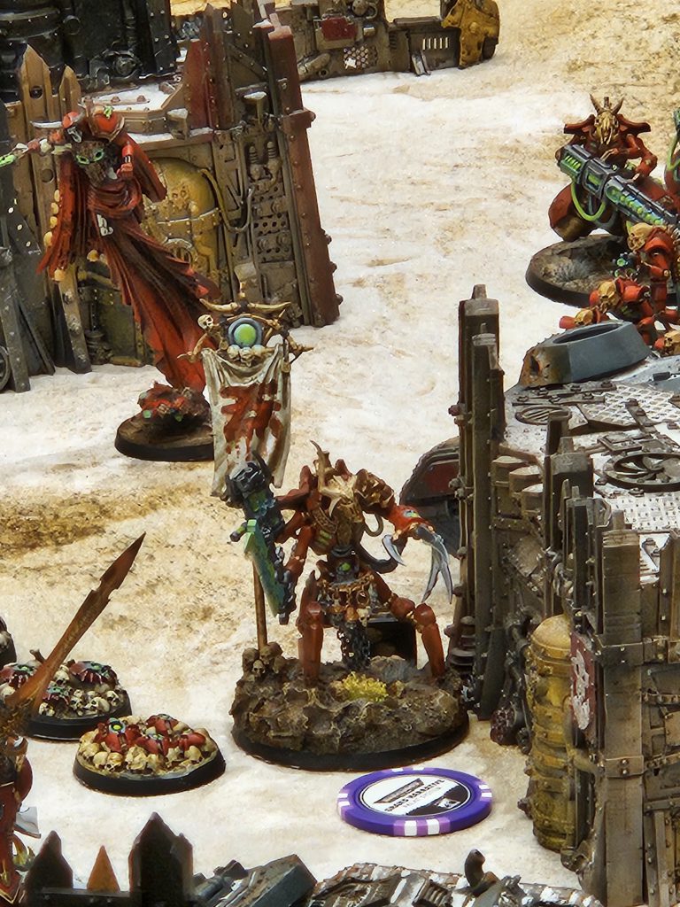 I was relieved to see the Seer from the day prior now was a bit feathery and was carrying around a staff with a giant eye in the middle. Now, this was a leader I could get behind. Though I wasn't exactly sure how a bunch of robots would help a daemon of Tzeentch achieve anything, I did know I finally had some direction as a leader. It was a simple task that I was happy about. Help her get off the planet; she helps me off the planet. Sounds good to me, as I wanted to continue living anyway, after collecting a glorious harvest. With said harvesting in mind, I began to focus on my next games after being properly inspired by my newfound powerful leader. We were going to get off this planet together! Everyone else be damned! Let’s get into the battles for the day.