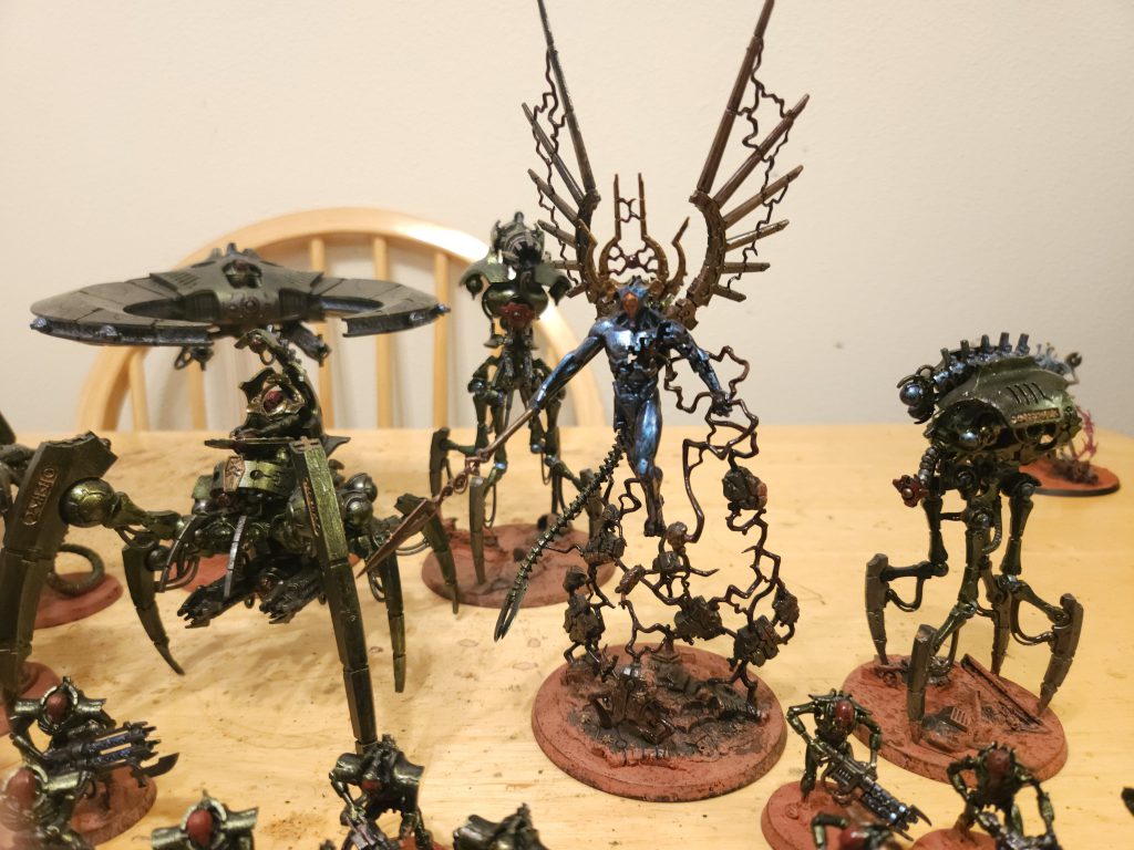 Hi Mat, to whip up a body for me. They took the brave choice of slicing off the lower half of an Illuminator Szeras. Then, for some added flair, scavenged parts from two of the slickest models I could lay my eyes on — Talos and Kronos from the Dark Eldar crew.