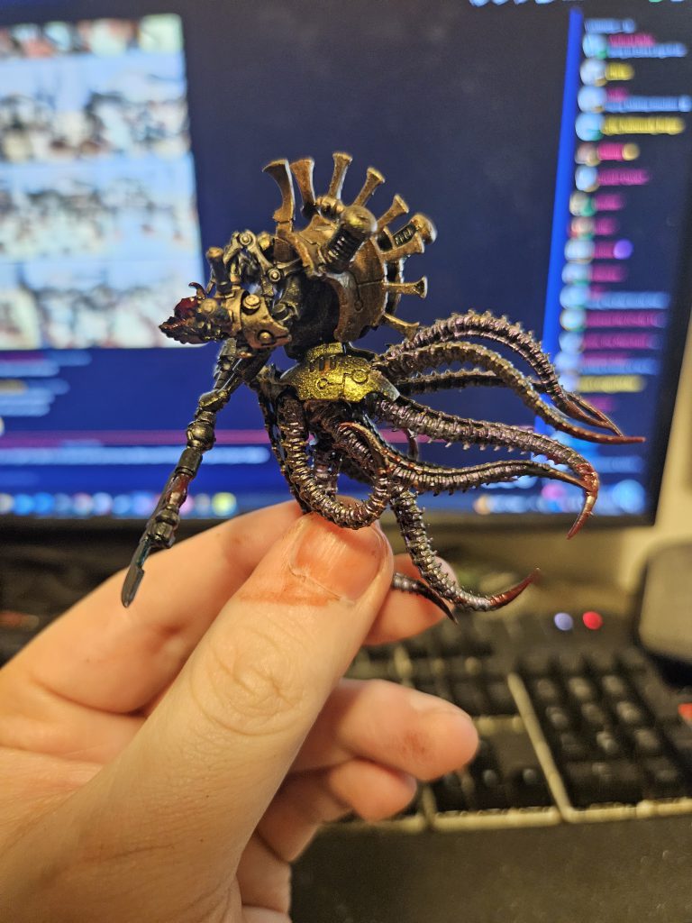 Now, why the surgical operation, you ask? Well, Psychomancers don't bother with legs. They're all about that floaty, tentacled aesthetic as they drift from place to place. So, they made sure to keep that vibe alive and kicking in the redesign. And let me tell you, I'm over the moon with how this whole concoction turned out. The fusion of Illuminator Szeras, Talos, and Kronos? Pure genius, if I do say so myself.