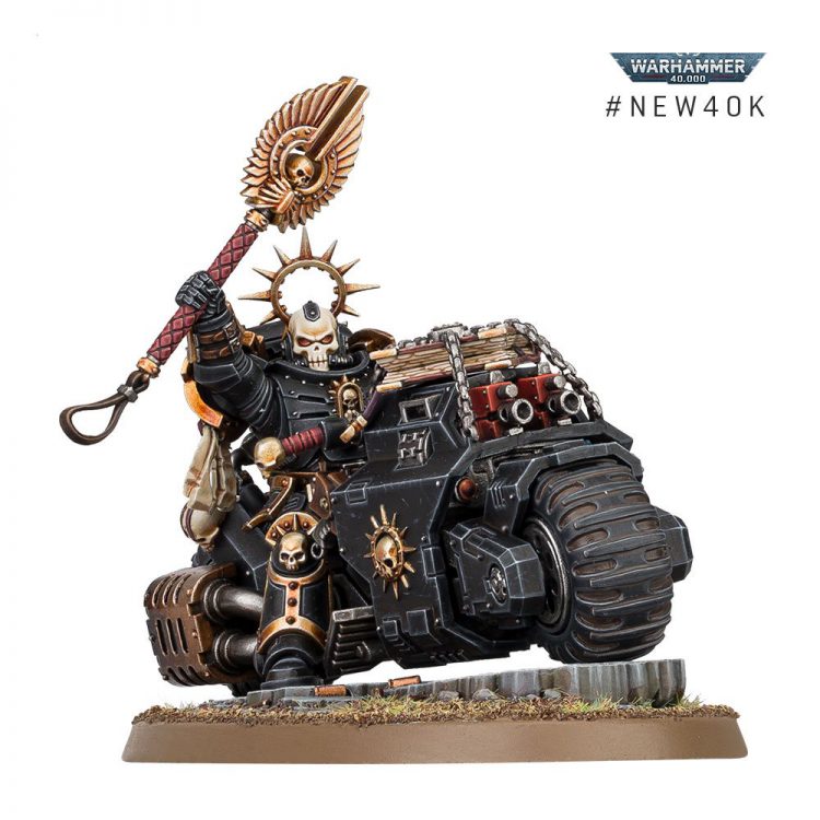 Greg: No surprises other than that he doesn’t get the +2 attacks that the Outriders get. This is just a Chaplain with two extra wounds, and the movement and guns from the normal Primaris bike. I think he still qualifies as a 12 O’Clock Boy, the rude teens from Baltimore that do wheelies into cop cars, but I bet the model isn’t even poseable enough for that.
