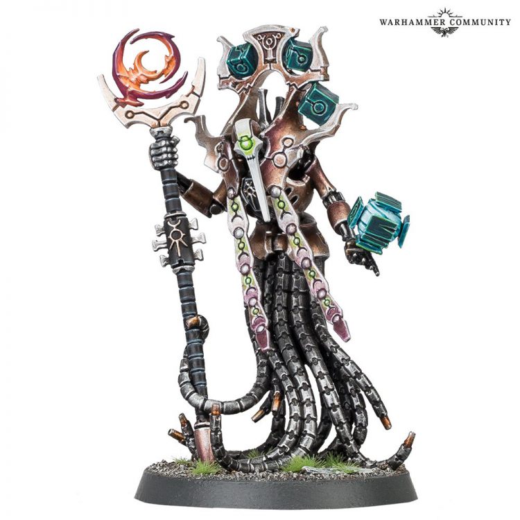 Greg: Pretty messed up that he isn’t stroking his gigantic metal beard with one of those tentacles. Necrons spend 60 million years in lockdown, grow these incredible quarantine depression beards, and then they can’t even pensively run a tentacle through it.