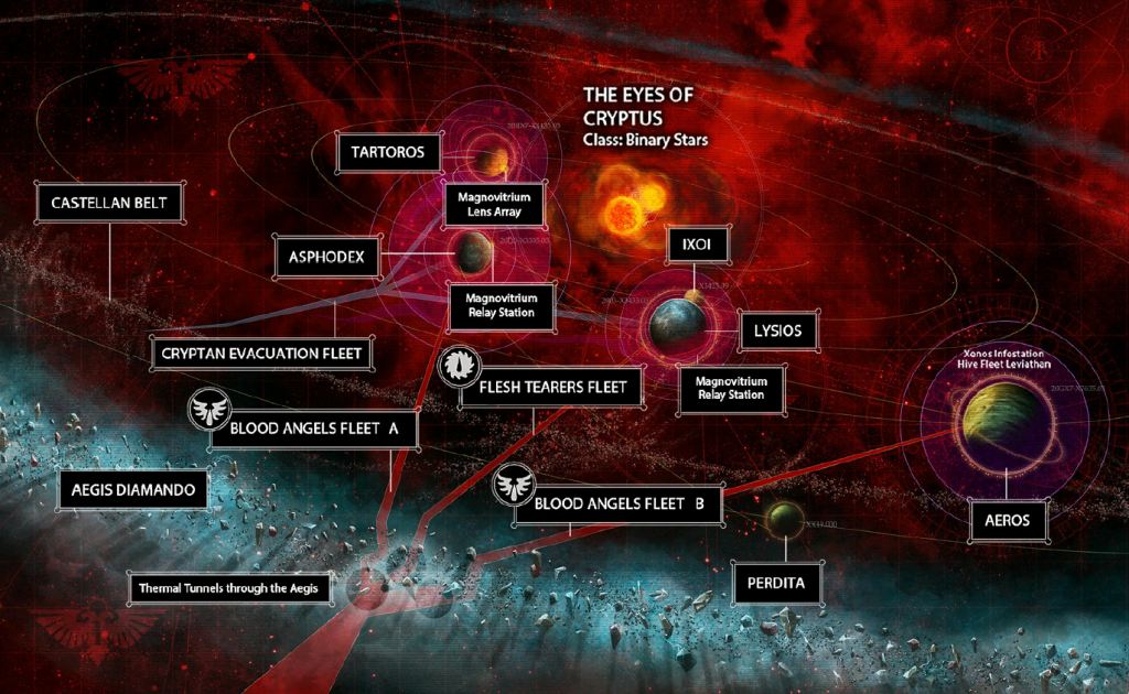 last examined the scene in the Cryptus System, things were pretty bleak. The Tyranids of Hive Fleet Leviathan had breached the system and laid waste to the defenders on most of its planets, leaving only a few million survivors from worlds which previously housed billions. A single distress signal managed to escape the Shadow in the Warp, calling out into the void for salvation from any foolish enough to walk into the gaping maw of Leviathan.