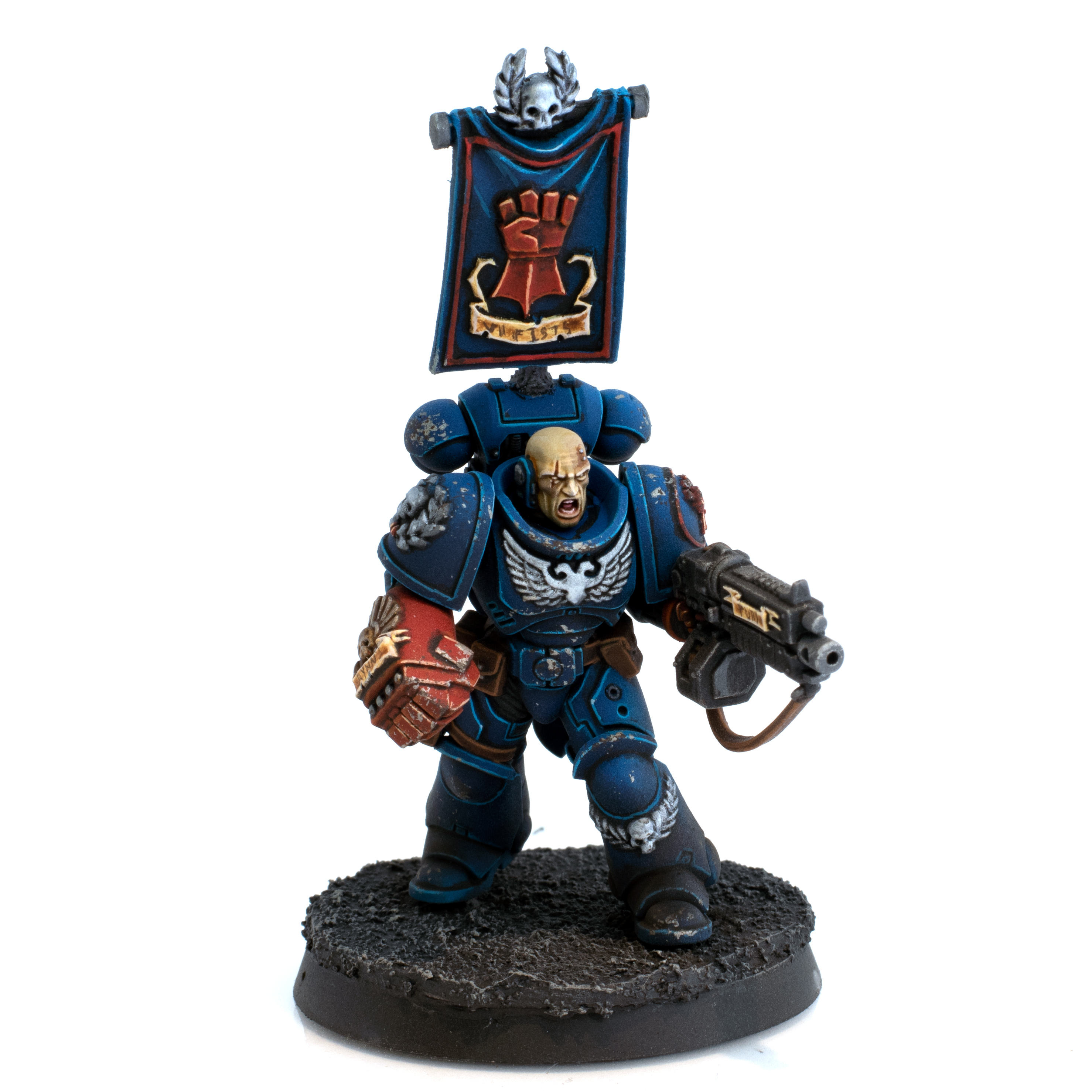 Under the Codex Astartes, Space Marine Chapters number 1,000 warriors (give or take) and are led by a Chapter Master. These warriors are organized into ten companies of 100 Space Marines each, plus a captain, apothecary, standard bearer, and chaplain for each company. Outside of these structures, chapters also host a number of specialists, including techmarines, librarians, and a fleet, plus a bunch of servitors and human serfs.