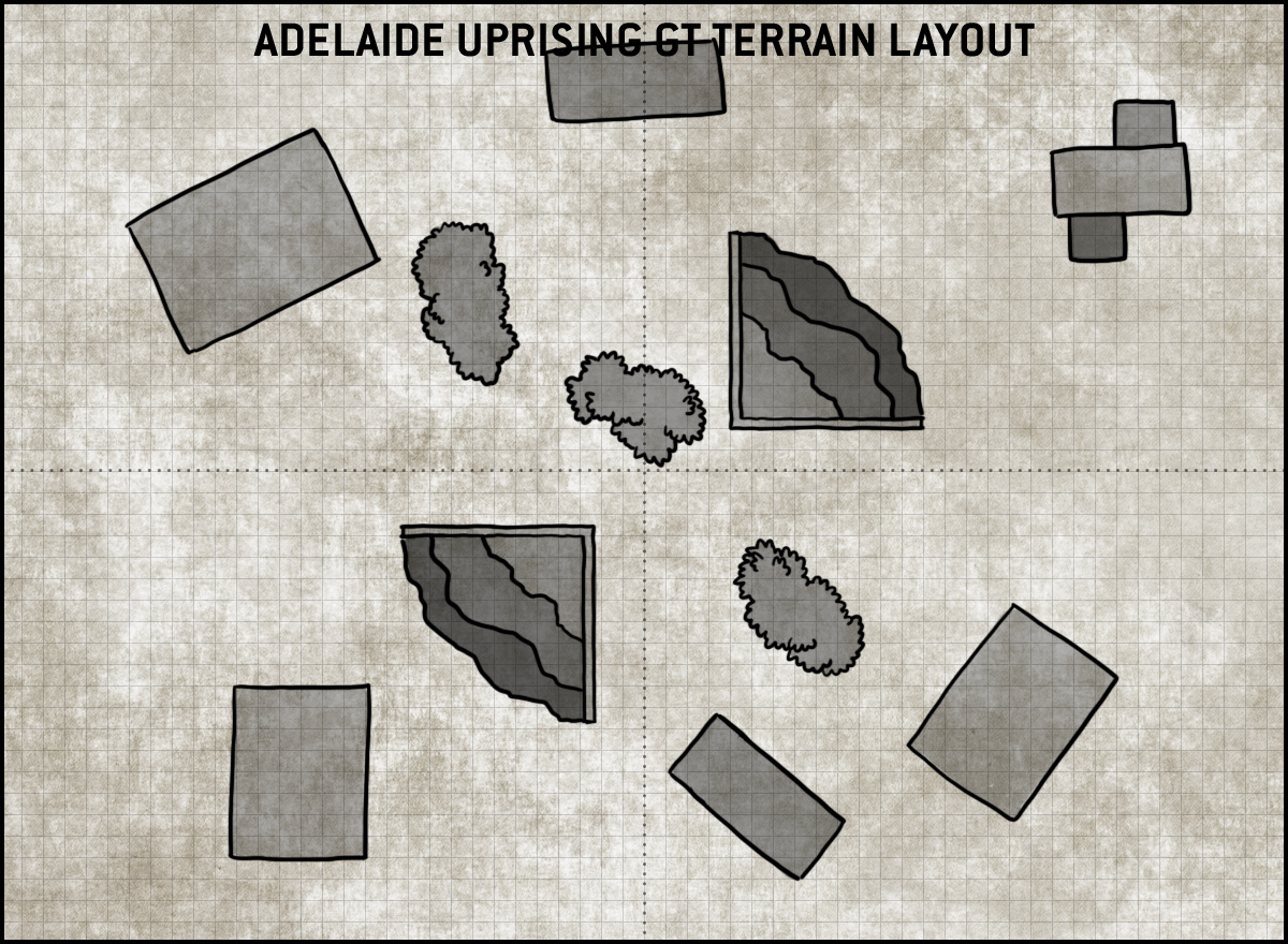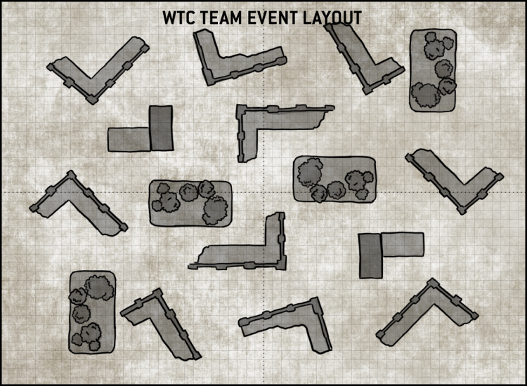 Note that the below is an example of a WTC Team Tournament layout. The event has many different layouts for different missions, but they all share the trait of being absolutely packed with terrain.
