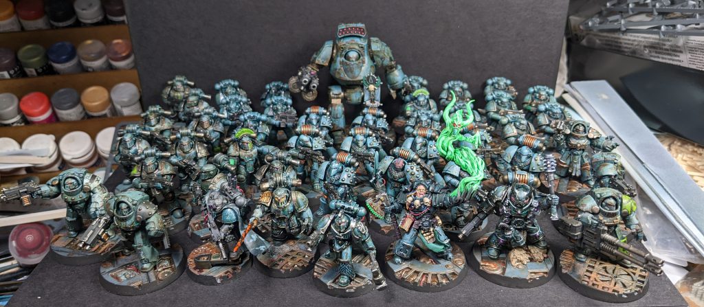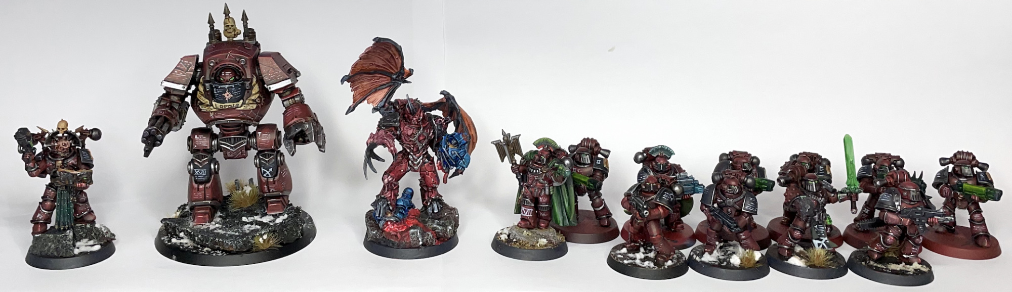 I’ve already painted Argel Tal, the old plastic Contemptor, a converted a Diabolist from a mixture of 40k and 30k plastics, and some Mk III and Mk IV models in various stages of Word Beariness.
