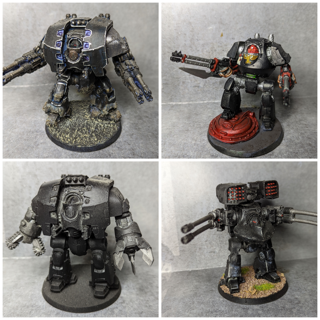 I'll need to dust the lads off and fix the bases at some point. The arms are magnetized on the Contemptor and the Melee Chonker so I can switch out weapons and take fun things like Twin Lascannons and Grav-flux bombards and then do a lot of touch up paint work before breaking out the transfers.