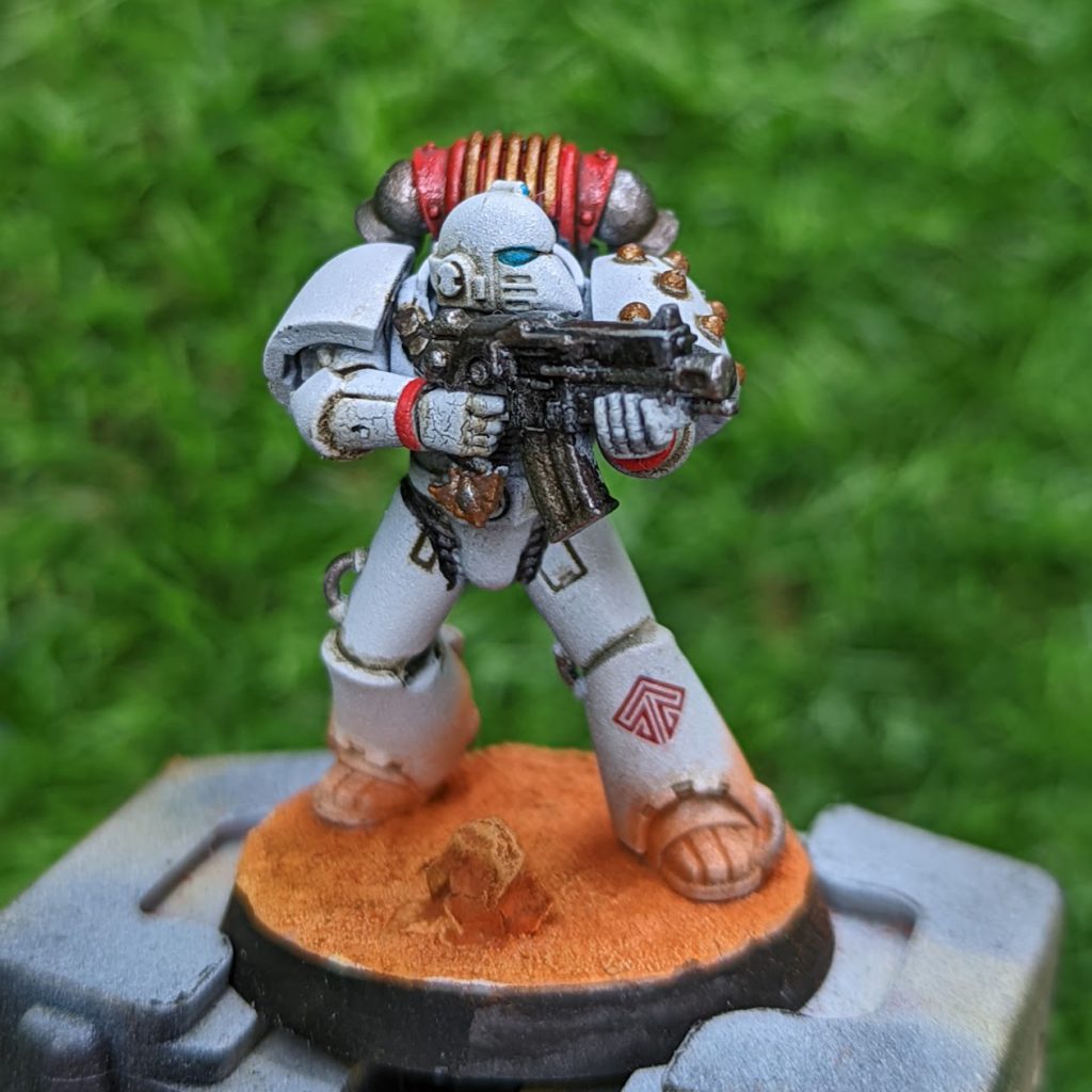 Here's the test Mk IV Word Bearer scheme that I'll be using, but the basing my change with the final paint job.