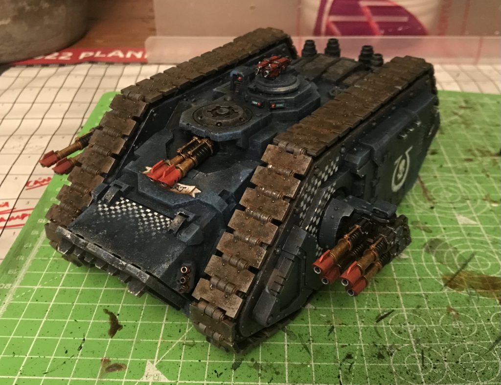 So naturally for this month, I painted a total of 2.3 (repeating) models: a Sons of Horus Land Raider Spartan, and the top half of Roboute Guilliman commanding the Land Raider Proteus Flame of Illyrium.