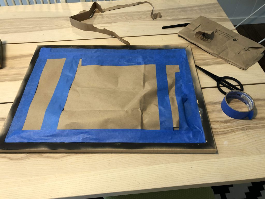 I had two steps left. First, I had to paint the edges. Second, I’d have to varnish the board. For the edges, I masked off everything: