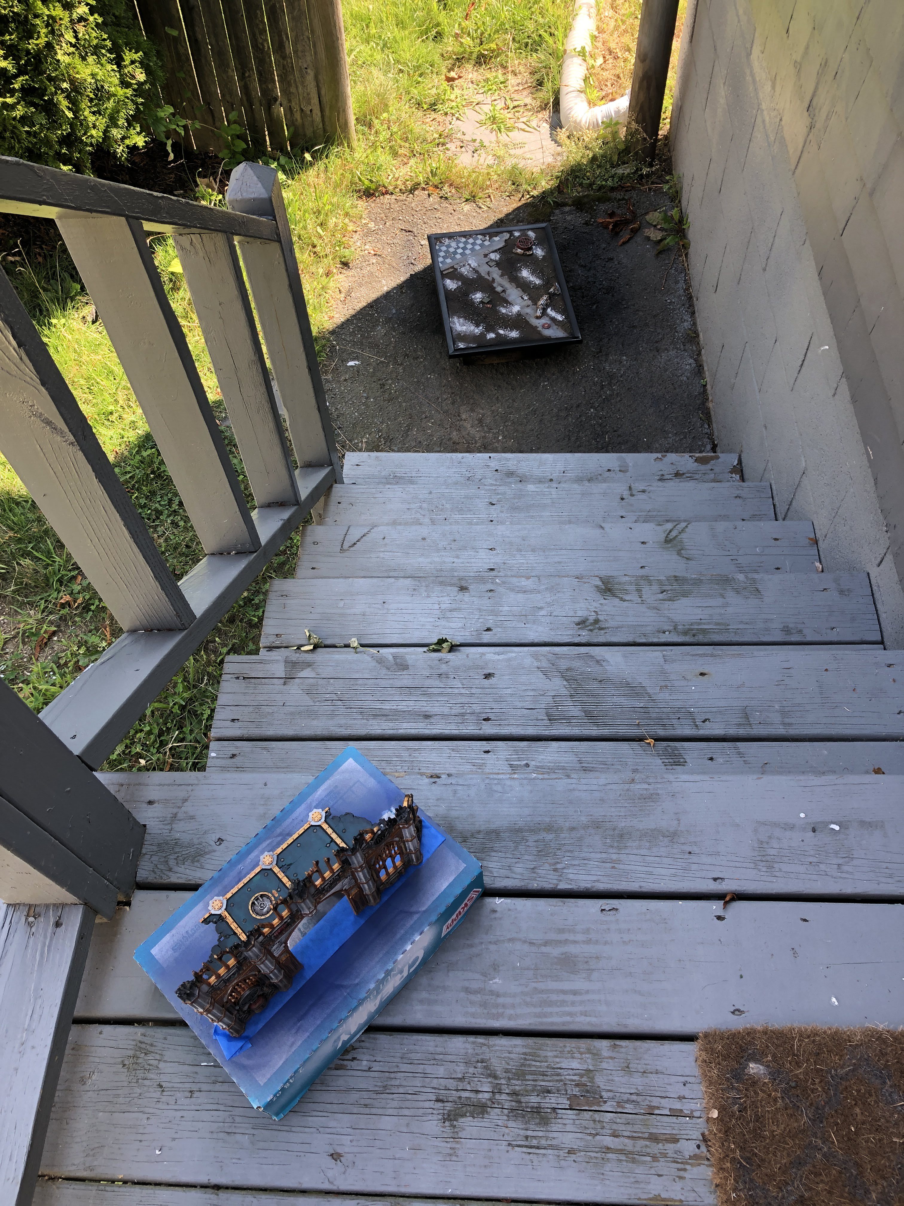 The building was fairly straightforward – new GW kits go together rather easily after all. Once it was done I could figure out the angle of the road and see if all my dudes fit on the board. Fortunately, they did!