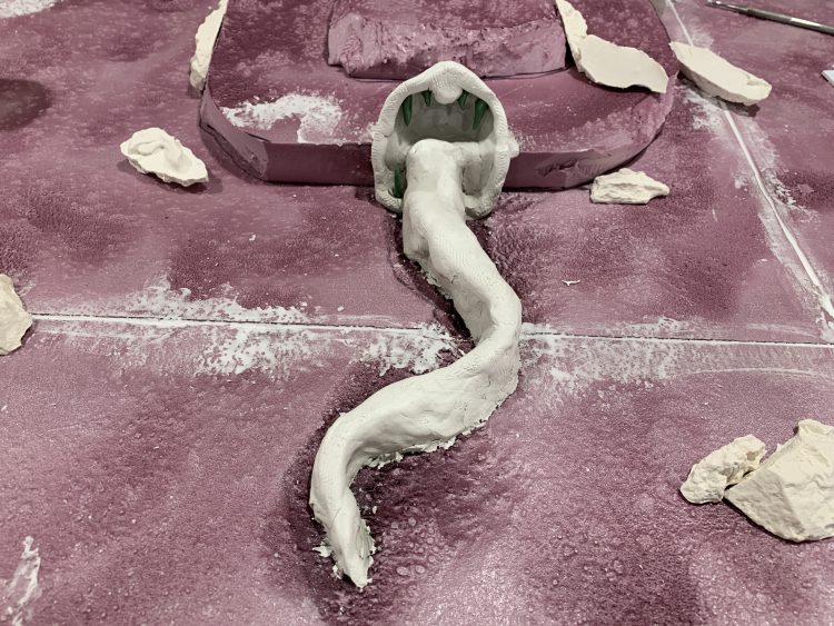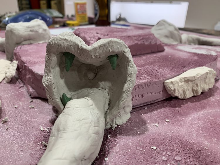 For the tentacles, I used another tip from Luke - air-drying clay. Forming the core with aluminum foil, I sculpted the tentacles and mouths around them. Sculpting is hard, y'all, and I have a newfound appreciation for those who do it. The mouths are clearly mouths but didn't quite turn out with the expressions that I was shooting for. Greenstuff was used for the teeth because that was much easier to work with.