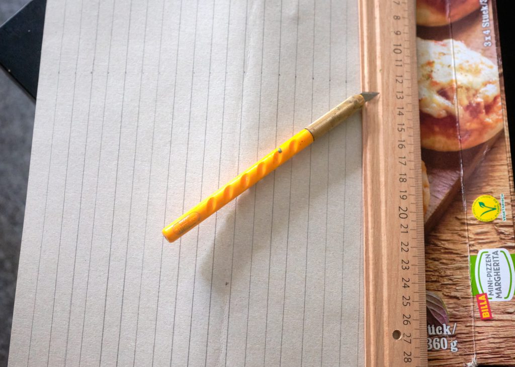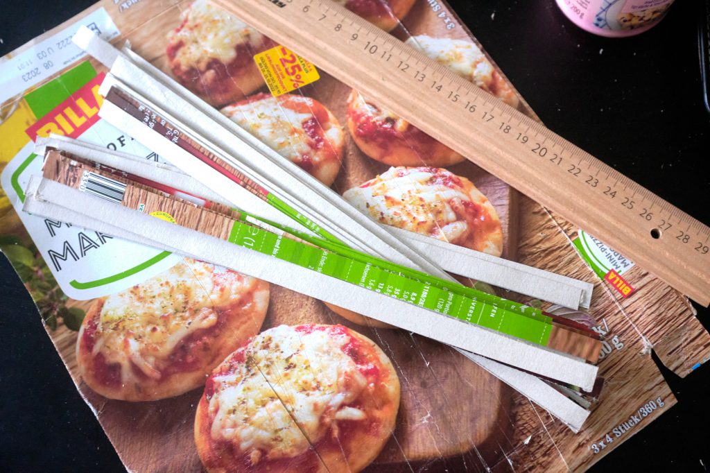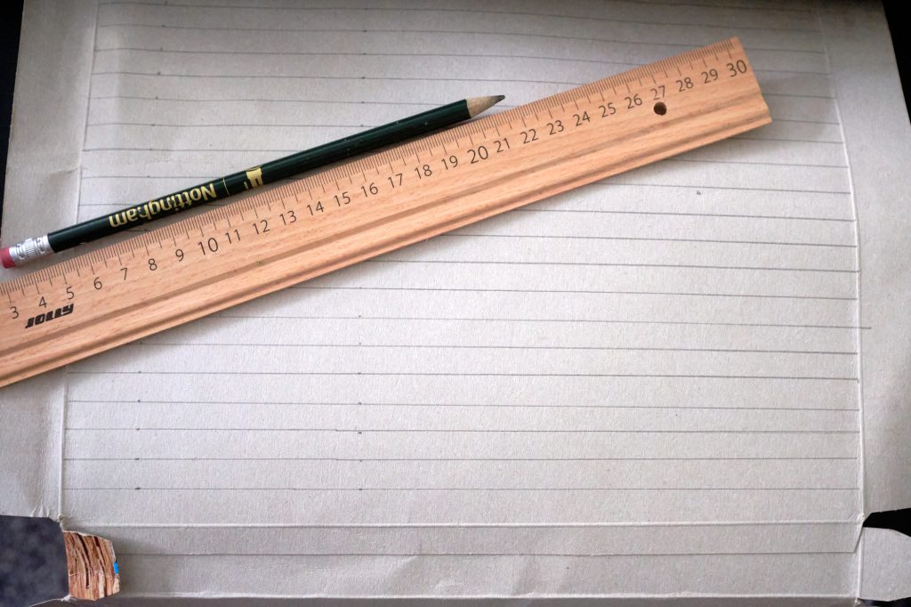 - Measure out 10mm wide strips, and cut them out with a sharp knife and ruler (and cutting mat!)