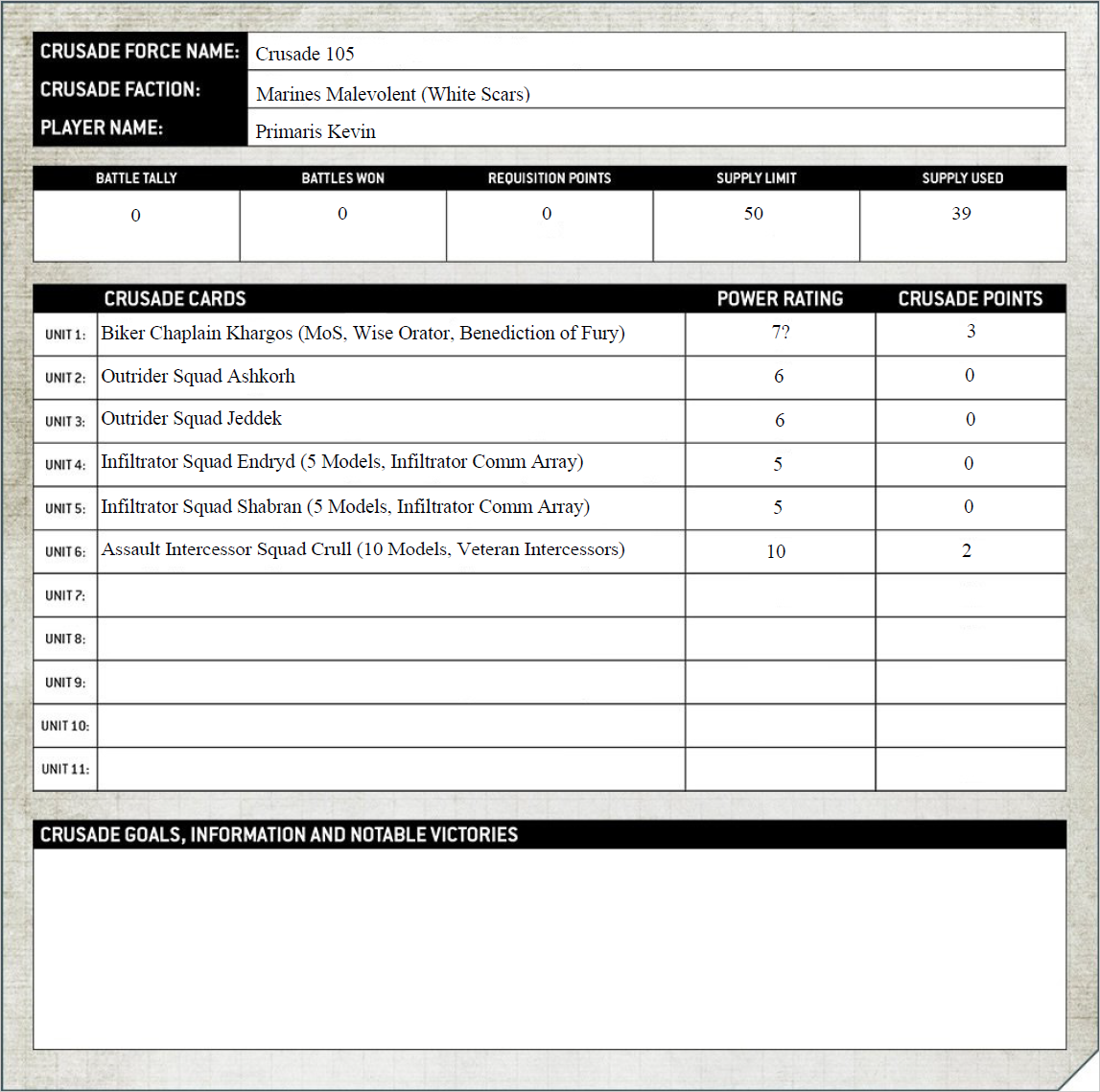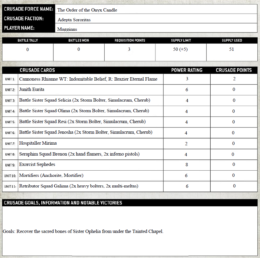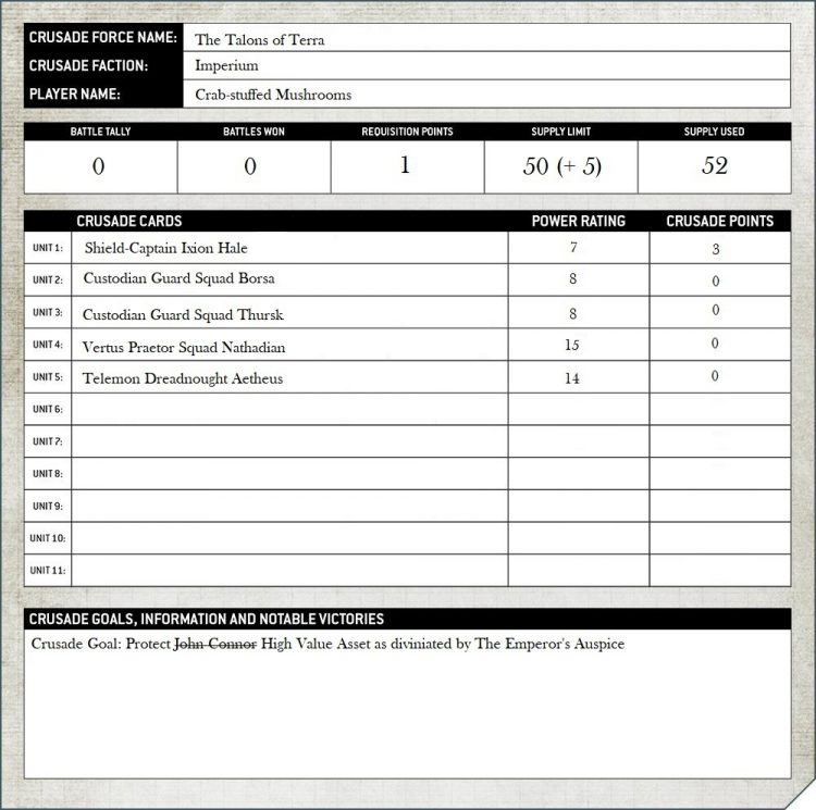 As for actually keeping track of all this? Whilst I’d love for the Warhammer 9th Ed app to be the greatest thing since sliced bread and be the Crusade equivalent that Yaktribe is for Necromunda, I’m more than likely going to stick with a google doc/sheet for now.