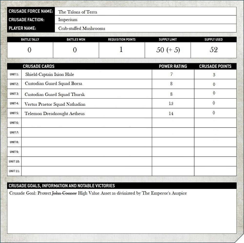 extremely turnt for Crusade. This will almost certainly bite us in the ass when we actually begin to play and become disenchanted with the rules but until then it's the honeymoon, baby!