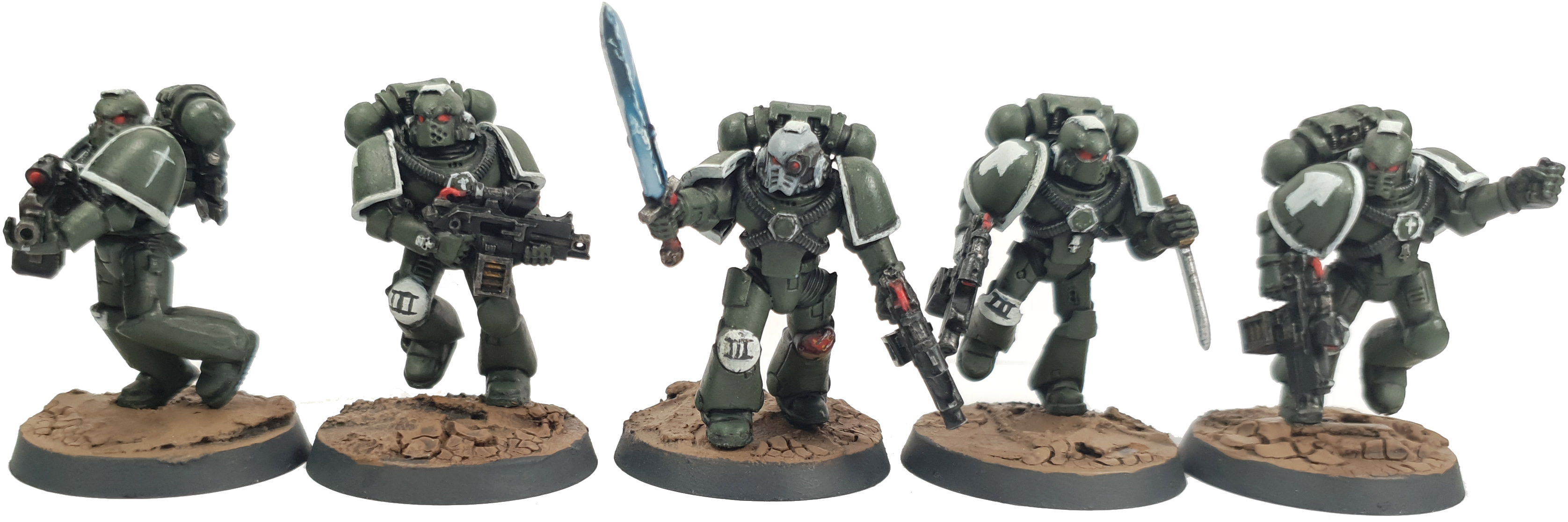 A relatively new space marine chapter, which specialises in counter insurgency/insurgency warfare and jump pack assaults. Their homeworld culture is very much 'train, live by and die by the sword'. Before the great rift they where currently rebuilding the chapter to full strength. Post great rift they find themselves desperately questing to protect their home. Names and inspiration are from Arthurian legend.
