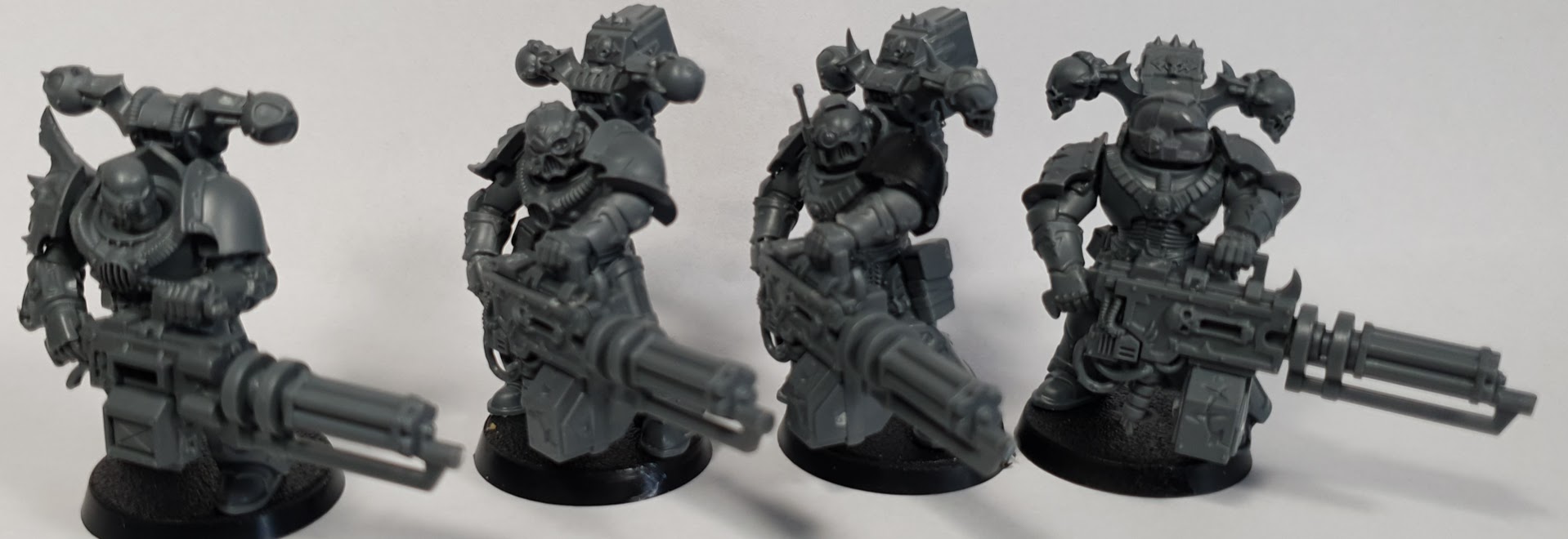 I intend to make most of this army out of plastic and thankfully the new chaos marines and terminators give me a hell of a base to build from. I also want to show that they are a renegade chapter over a full blown chaos legion, so a few normal marine kit parts from my bitz box making an appearance should lean into that nicely.