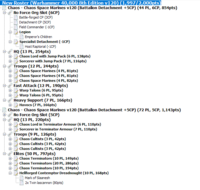 Battlescribe can have errors but it is a fantastic tool for quickly planning out your list. Here is the rough build list for a army of The Pure from ADB's Spear of the Emperor.