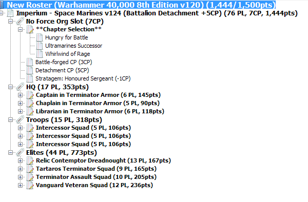- I dropped the Chapter Exile, tactical squad, razorback, contemptors and vindicator from the list and...