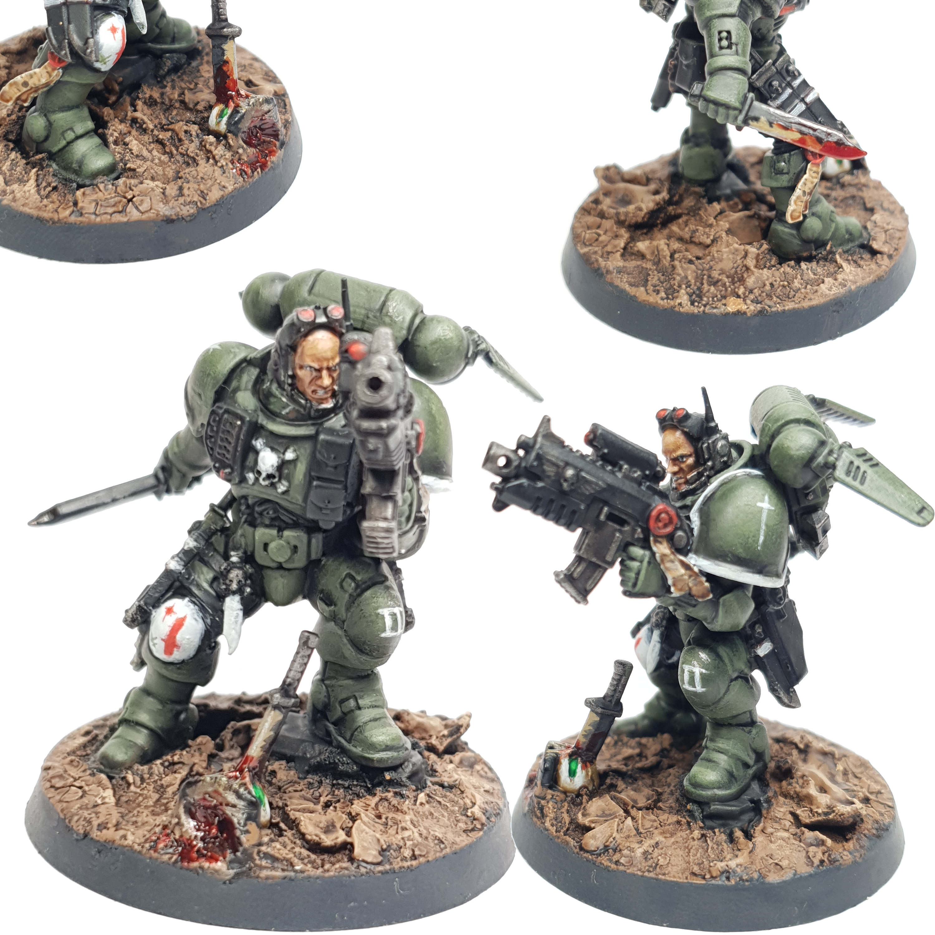 A player's custom space marine chapter, which specialises in counter insurgency/insurgency warfare and jump pack assaults. Their homeworld culture is very much 'train, live by and die by the sword'.