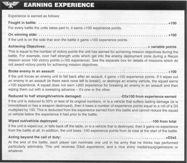 A campaign experience System from the 3rd Edition Warhammer 40,000 rulebook. Credit: Games Workshop