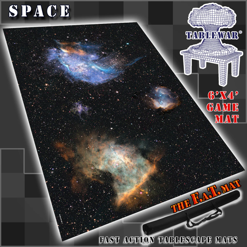 the 6'x4' 'Space' gaming mat from them. Yes, 6x4 is larger than a standard 40k table these days, but A. we're running a lot of megabattles, and B. this will give flyers and AIRCRAFT more room to move around, which is ideal.