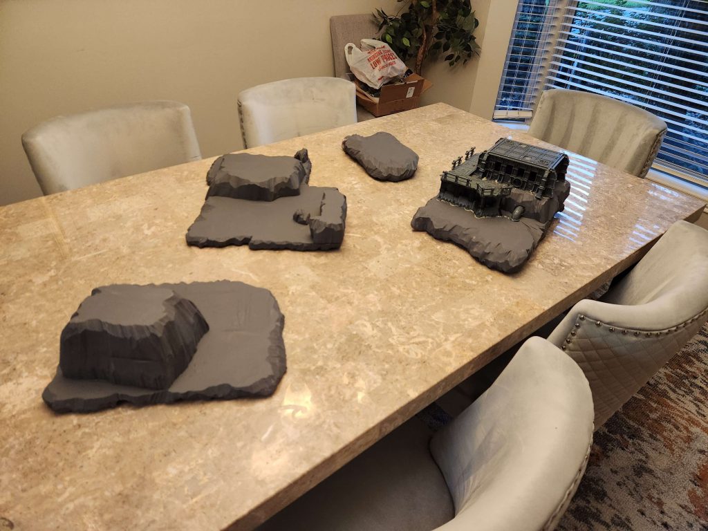 - Floating Platforms - The battle takes place on a series of disconnected platforms in space, requiring units which can move between them. This is a modeling project, involving a black "space" mat and some rocks. Floating possible if I have time, but kind of a pain to implement.