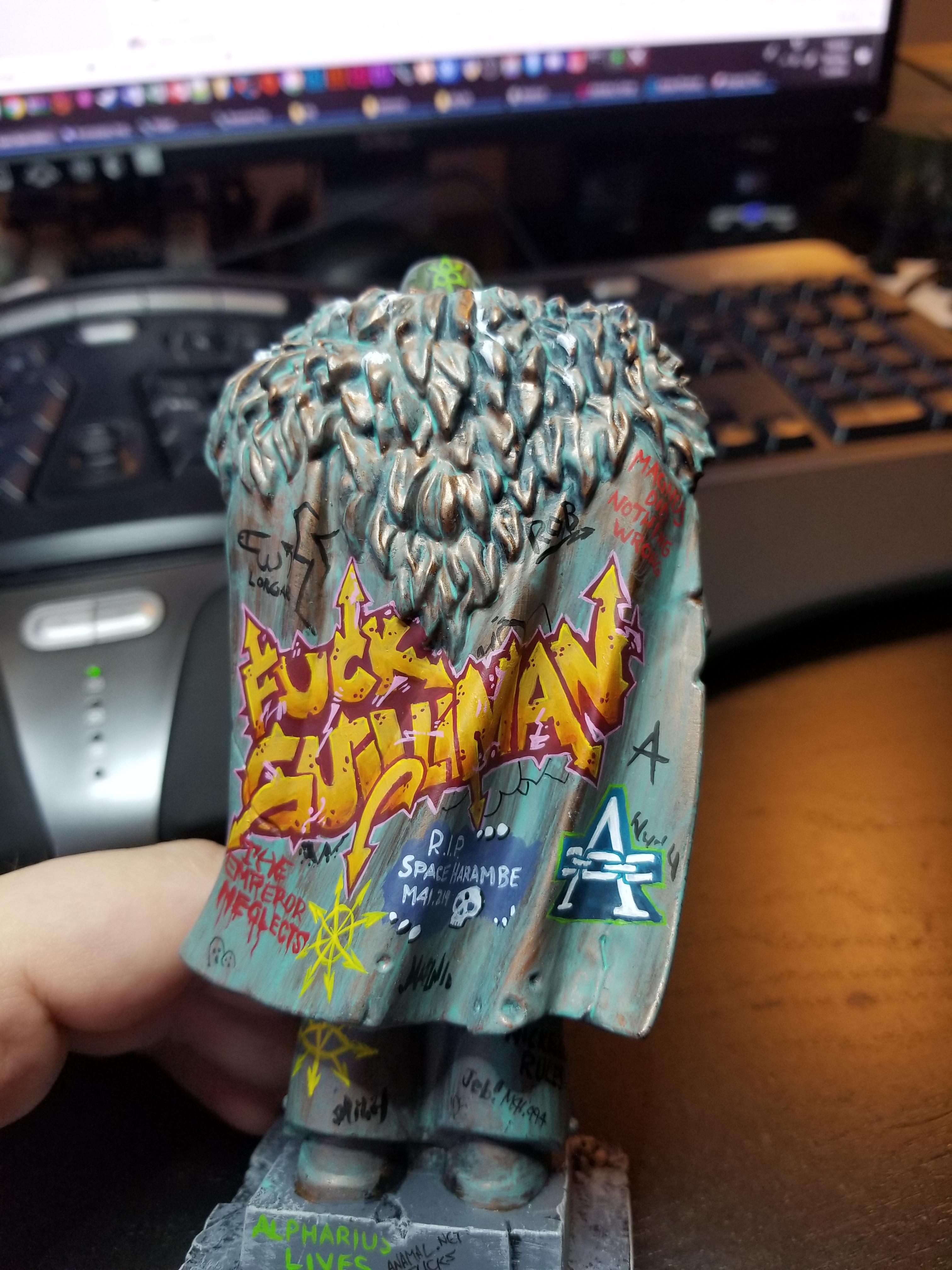 This piece got some press a while back since it showed up shortly after the Kelermorph model was released. It's a great piece on the northern end of Manchester and shows some 40k art in a real context. Something like this is neat because it could serve as propaganda for Genestealer Cults, portraying the Kelermorph as a cute, friendly, hero.