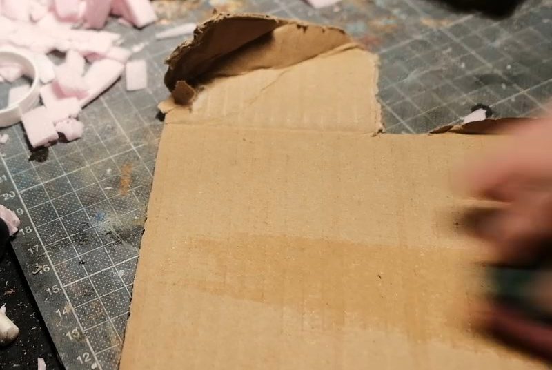 Since the strips were too flimsy on their own, I needed to add some kind of structure for the roof, so I got a bit of stiff cardboard and cut it to size before gluing it into place, easy peasy.