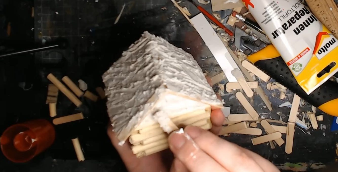 Next, I covered the entirety of the roof with polyfilla, or spackle if you’re American. This is going to imitate the soil of the turf roof.