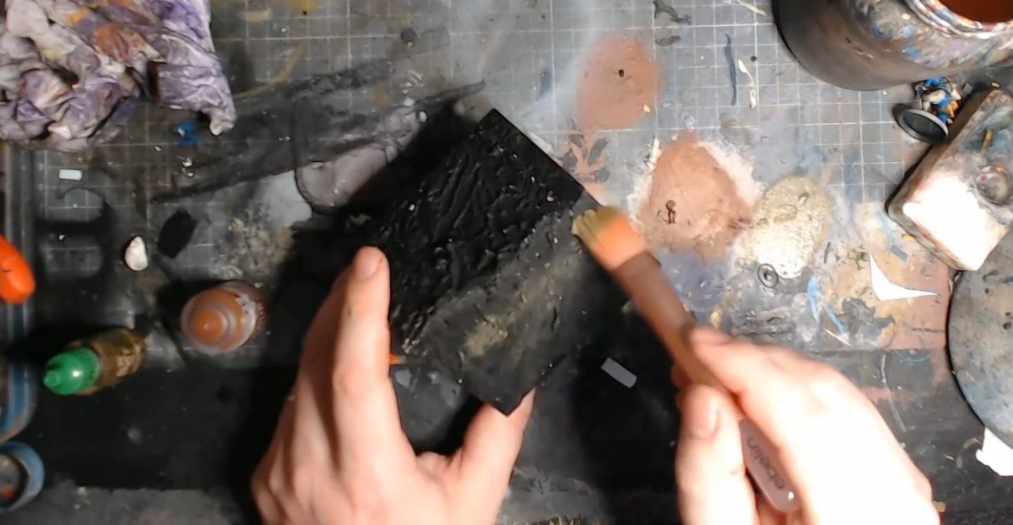 The bricks of the fire pit are treated to a bit of Nuln Oil, and so too do the large stones.