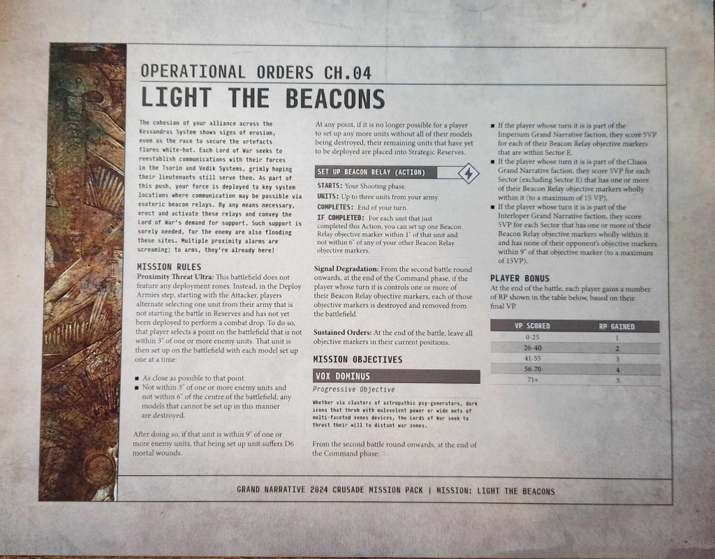 There were six missions - with some twists - created exclusively for the Grand Narrative. These are, on the whole, pretty wild - though that's not necessarily a good thing. They do some things we haven't seen before, especially in tenth edition, and if you're looking for some Crusade missions that don't rely on Leviathan or Pariah Nexus mechanics, these are your only option.