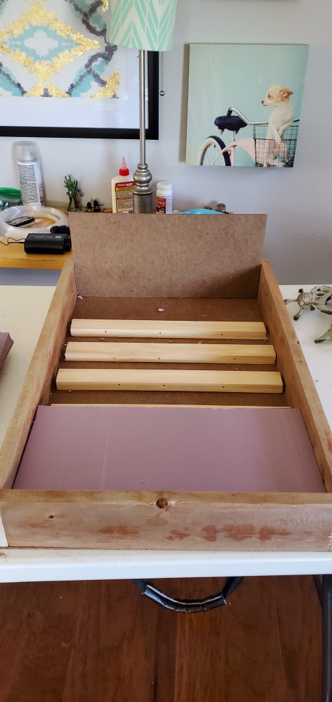 2). It is much easier to carry but does not sacrifice the usable area. I also wanted this to be a board that I could take on a plane – likely as a checked item. While that piece is still being figured out (it is going to require a latched cover), the main takeaway for construction is that the board itself must be durable. I opted for a pine wood frame that is 3.5” wide by 0.75” thick. Pine is light while study enough not to break up with normal handling. Putting together the frame gives me the canvas I need to start planning how I want it to look.