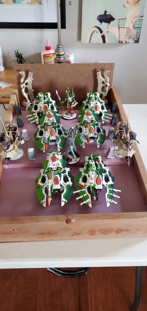 The last couple of months has allowed me to really dig into my backlog of Wraithlords, Wraithguard, and some of the other misfit toys of the 40k universe. Unfortunately, not even a pandemic could force me to stay focused on these things and I have been spending my free time working on a labor of love – a new display board. If you have not previously seen our fantastic