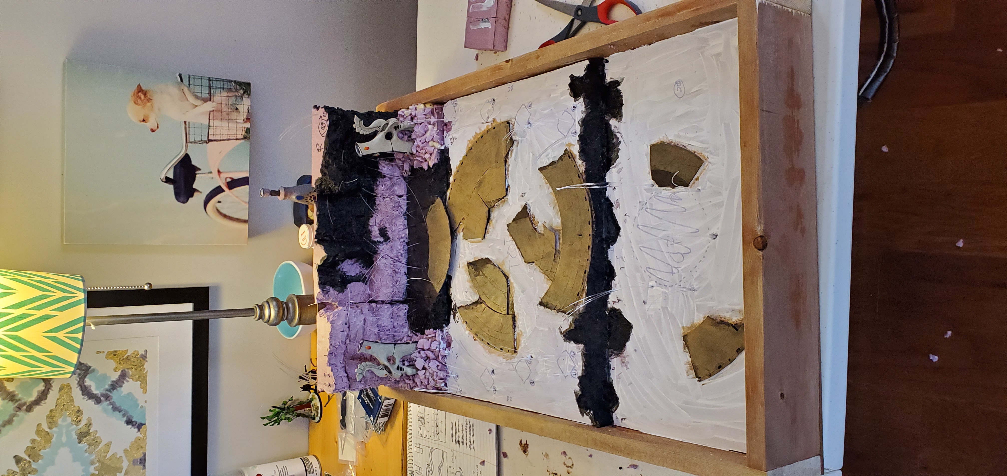 Added a broken up mdf piece from an old terrain kit I found - last minute add but it makes a nice addition to break up the large flat area - you can start to see the work on the cliffs to the right