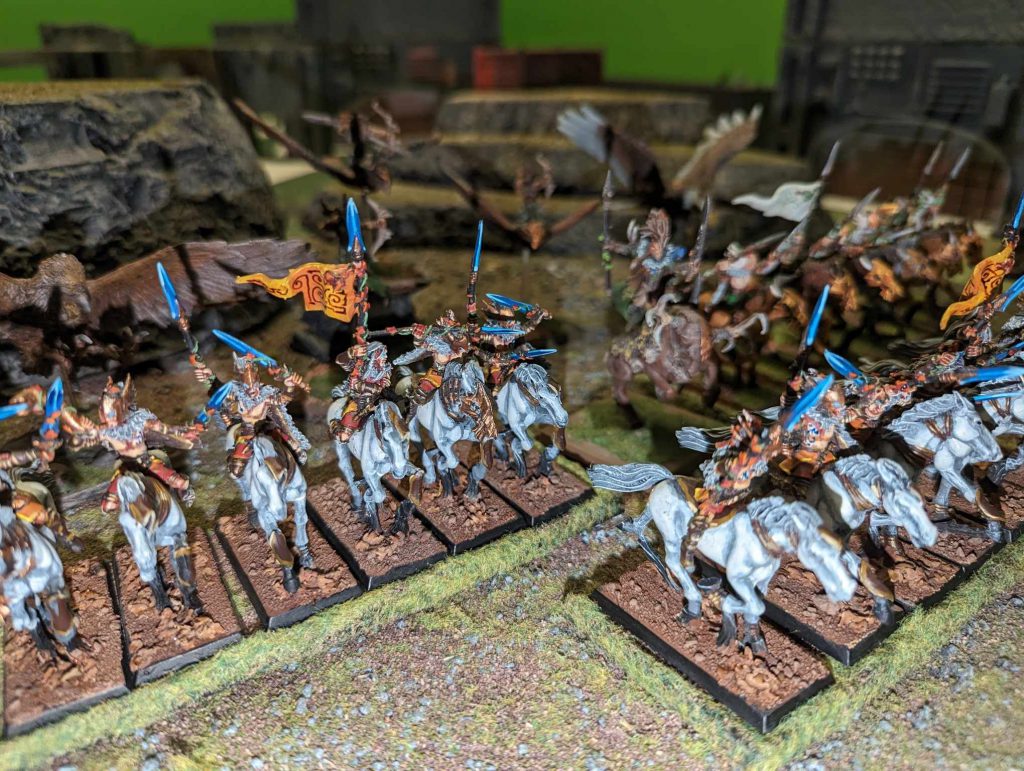 258 - 10 Glade Riders, Hagbane Tips, Glade Knight, Spirit of Kurnous, Standard Bearer, Musician, Drilled, Reserve Move