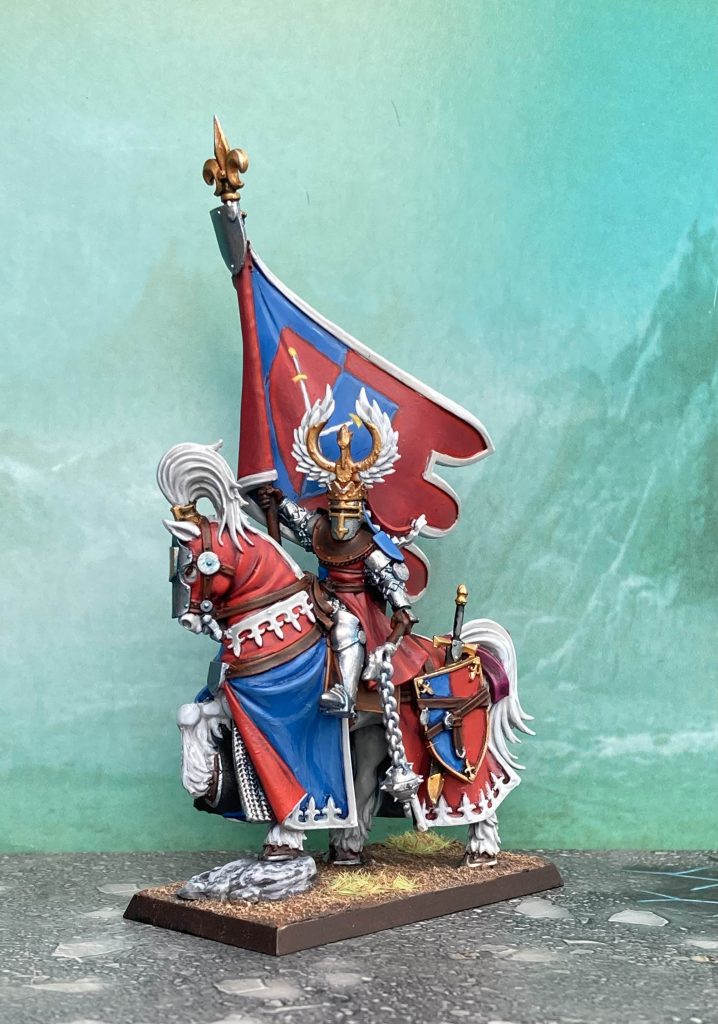 Paladin [241pts]: Shield, Lance, Royal Pegasus, The Grail Vow, Battle Standard Bearer (War Banner), Gromil Great Helm, Gauntlet of the Duel, Virtue of Duty
