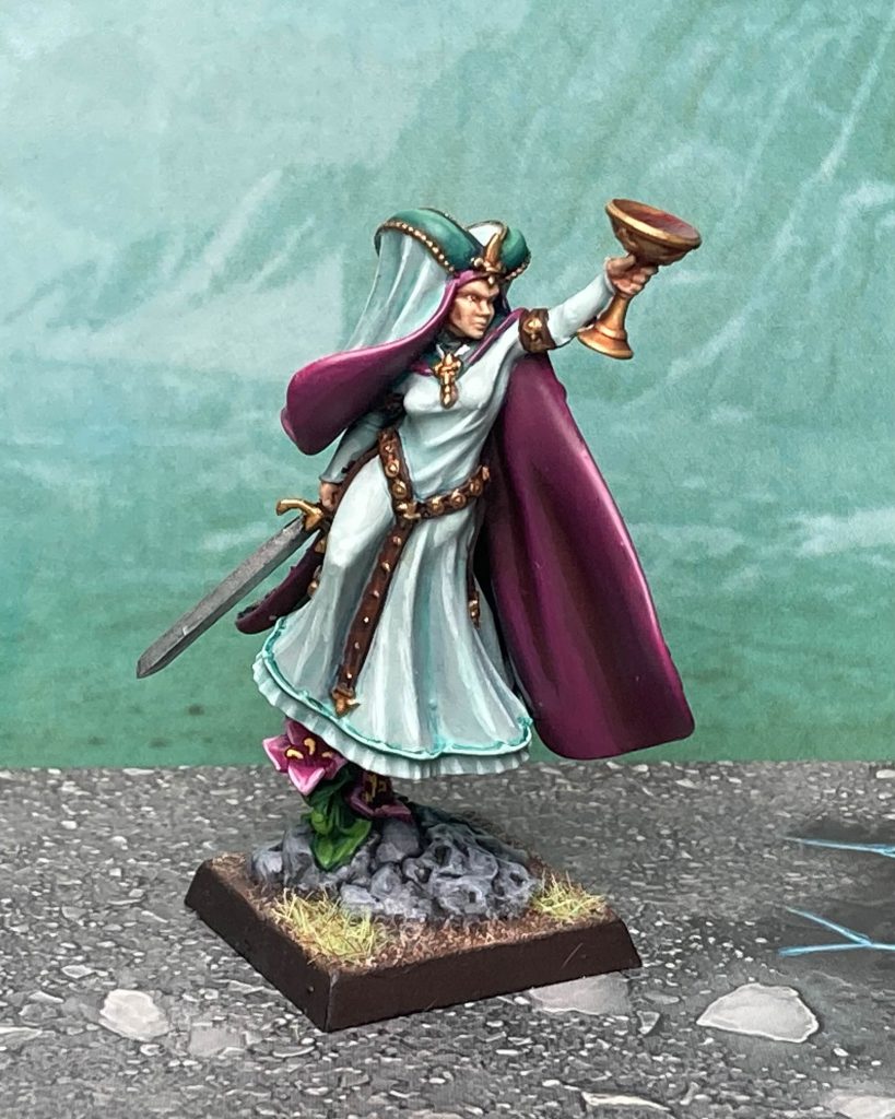 There is not much wiggle room in this list and everything has its place. The Falcon-horn is firmly in the Grail Guardian’s hands, the Battle Standard Bearer is a tank that breaks ranked units, the Duke takes down everything bigger than himself, and the wizard will clean up points left and right. Your wizard will likely be taking Fireball, Pillar of Flame, Arcane Urgency, and a signature spell of your choice in most games, and she is mostly there to clean up chaff, skirmishers, and lightly armoured things and stay out of dispel range of the enemy so that Pillar of Fire can do its business.