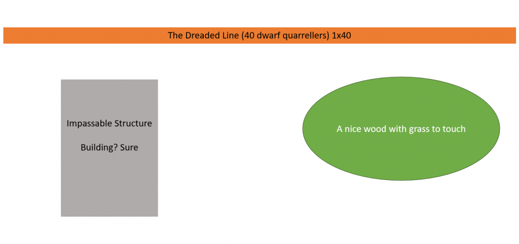 my Line in front of terrain that would be stupid!" and yeah obviously that would be stupid. You know what else would be stupid? Having a section of board large enough to be able to set up The Line without terrain in front of it.