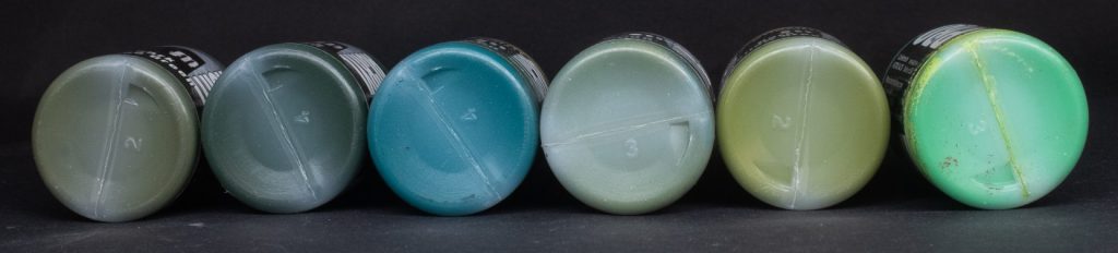 - Twist tops prevent clogs but don’t prevent mess, I dread to think how much paint gets wasted this way, these can be replaced with normal droppers or the flip caps you see on larger bottles, but the more invested you are in ProAcryl the more those lid replacements will cost you, and since I’ve got the full whack it’d cost like 50 euro to swap all the lids, no can do!
